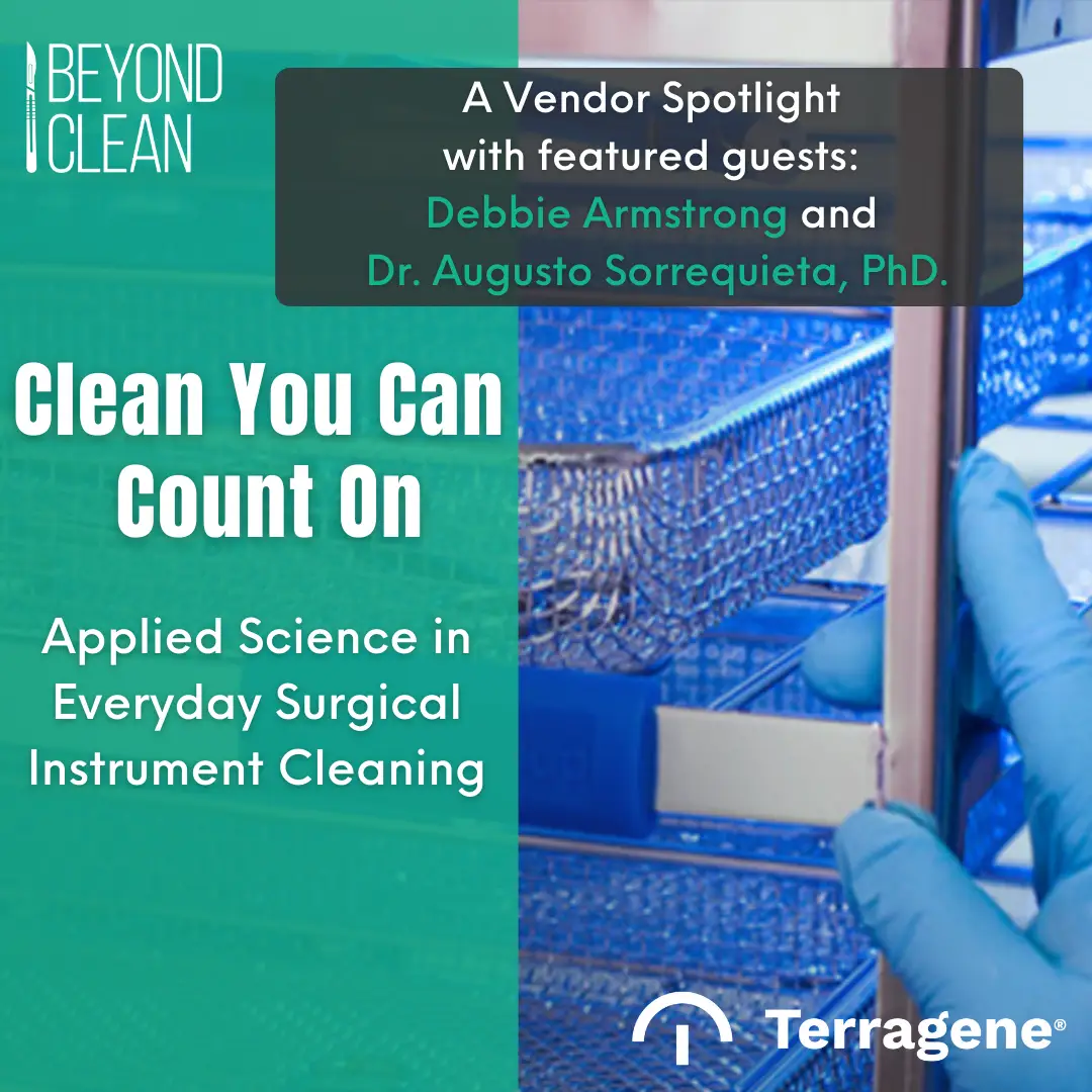 When it comes to safe surgical devices, if you are not certain it’s clean, it doesn’t matter what you do next, and your surgical patients could be at risk. On this Beyond Clean Vendor Spotlight we speak with Debbie Armstrong and Dr. Augusto Sorrequieta, PhD. at Terragene, an innovative new company about the Perfect Wash Control System – a complete and automated cleaning monitoring system designed to react to all critical parameters in washer-disinfector cycles. For an accurate and convenient method of routine control and an assurance of disinfection in your mechanical washers, every cycle, every time, press play to listen now!