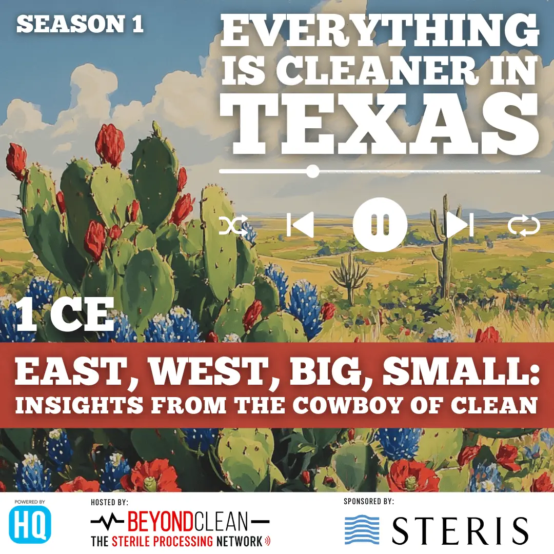 From east to west and everywhere in between, no one’s seen it all quite like Ron Hunsucker. In this week’s episode of Everything is Cleaner in Texas, we sit down with the legendary “Cowboy of Clean” to talk shop on everything from certification journeys to culture shifts in Sterile Processing. With four decades of boots-on-the-ground experience, Ron shares the wins, the lessons, and the leadership mindset that’s shaped his work across every corner of the Lone Star State. Whether you’re learning the ropes or leading the way, this conversation is filled with hard-earned wisdom and that signature Texas grit.