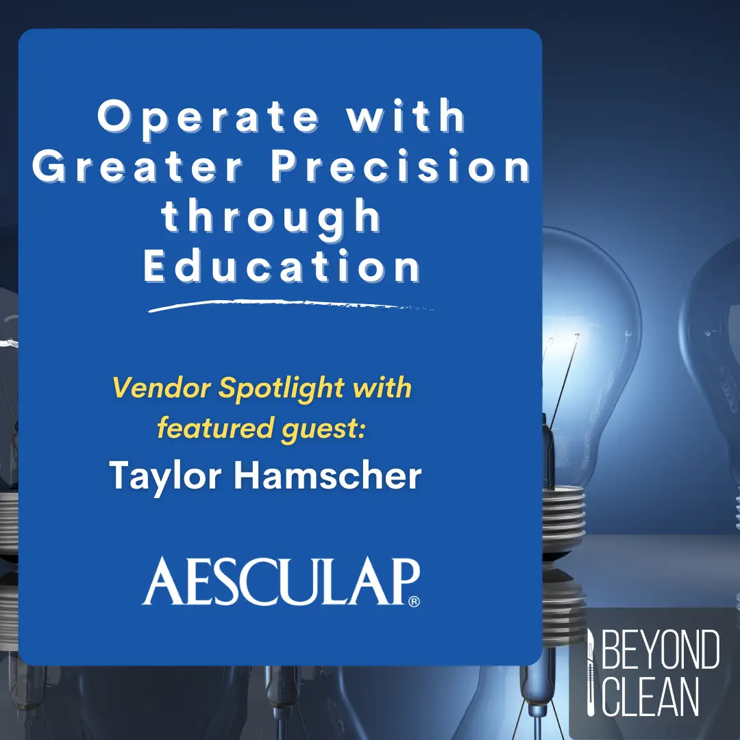 Effective education programs for the Sterile Processing and Operating Room spaces help build staff confidence and lower staff frustration. On this Beyond Clean Vendor Spotlight™ we talk with Taylor Hamscher, Associate Product Manager at Aesculap USA about their innovative education programs presented by clinical subject matter experts live, virtually, and on-site that address patient outcomes, operational efficiency, sustainability, and clinical & staff satisfaction. Tune in to hear how the clinical team at Aesculap is helping teams operate with greater precision by closing the knowledge gaps and reducing errors in Sterile Processing and Operating Rooms everywhere.